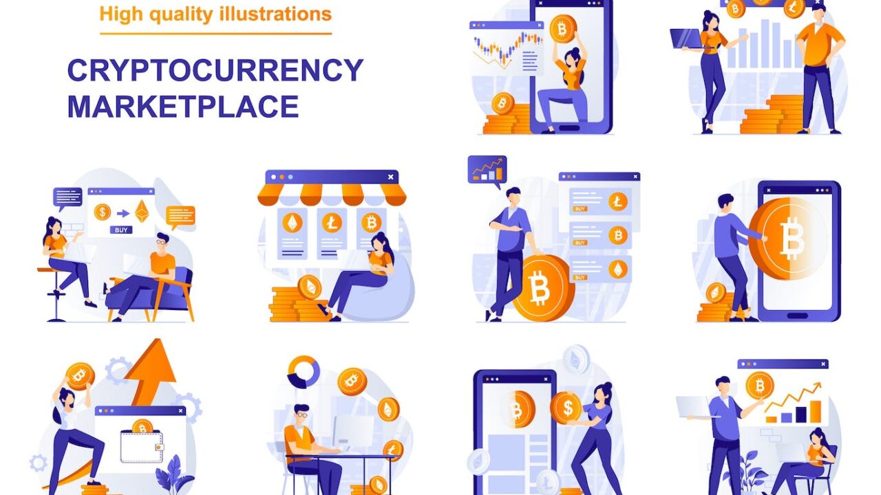 Cryptocurrency Marketplace Illustrations Set