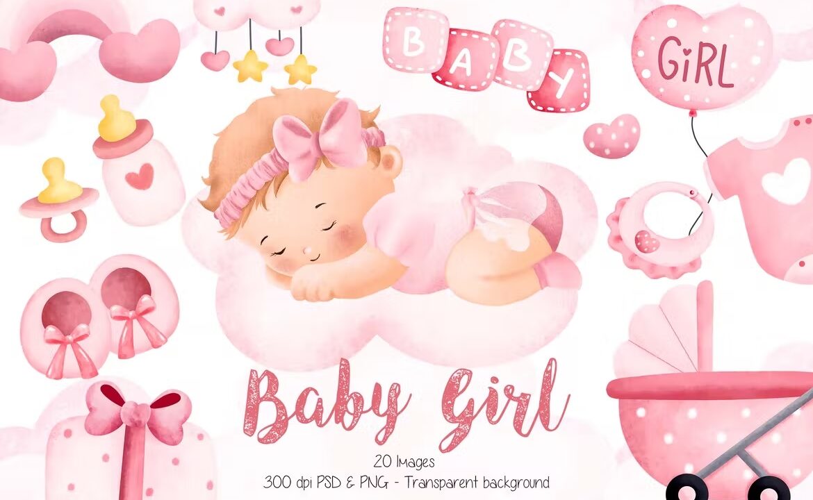 Watercolor Baby Girl Clipart