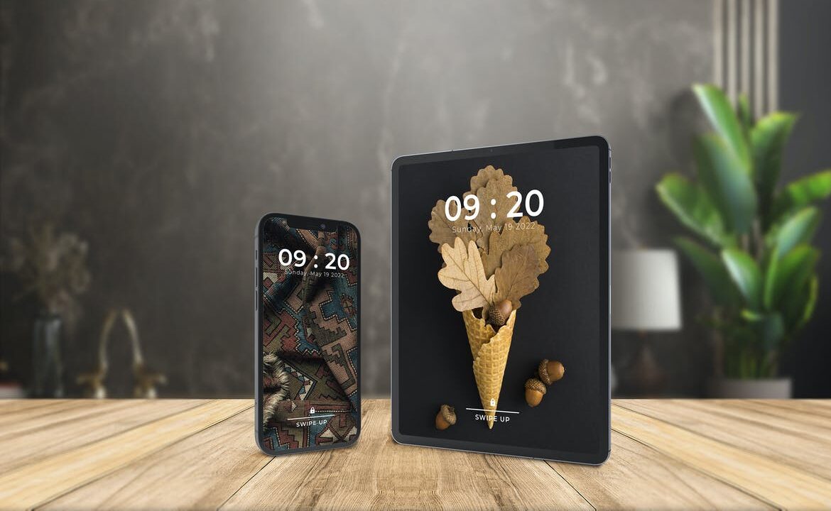 iPhone & iPad Mockup On Wood Table Mockup