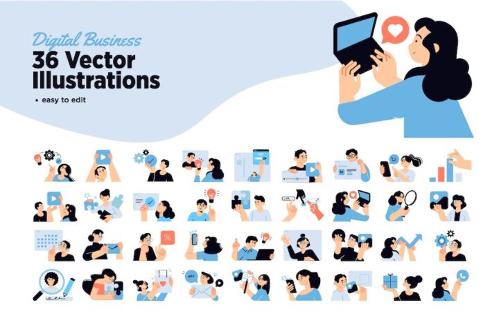 Set of Digital Business People Illustrations