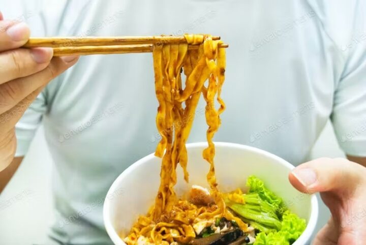 Happy woman making healthy food standing smiling in kitchen preparing food