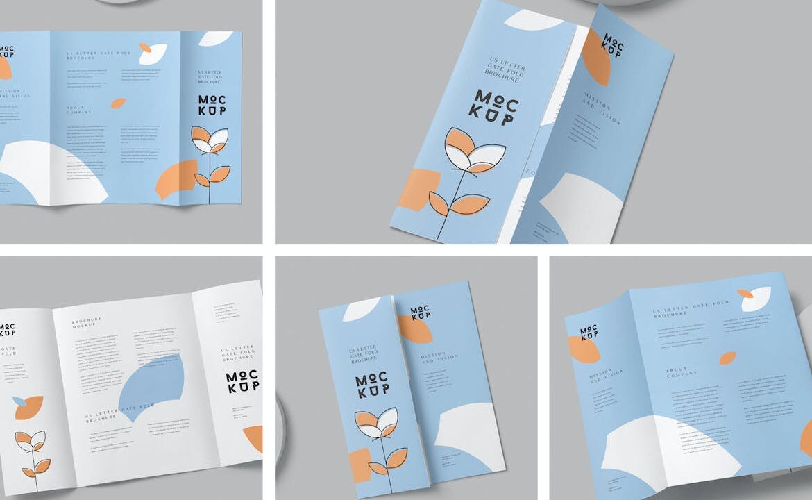 US Letter Gate Fold Brochure Mockups
