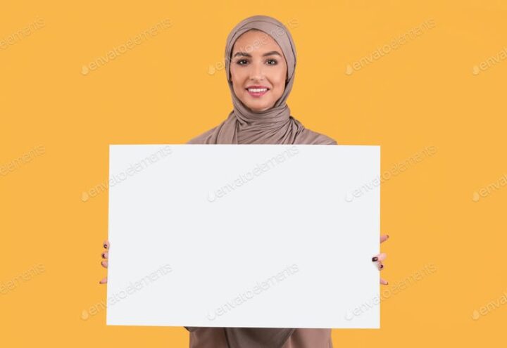 Muslim Lady Holding Blank Poster