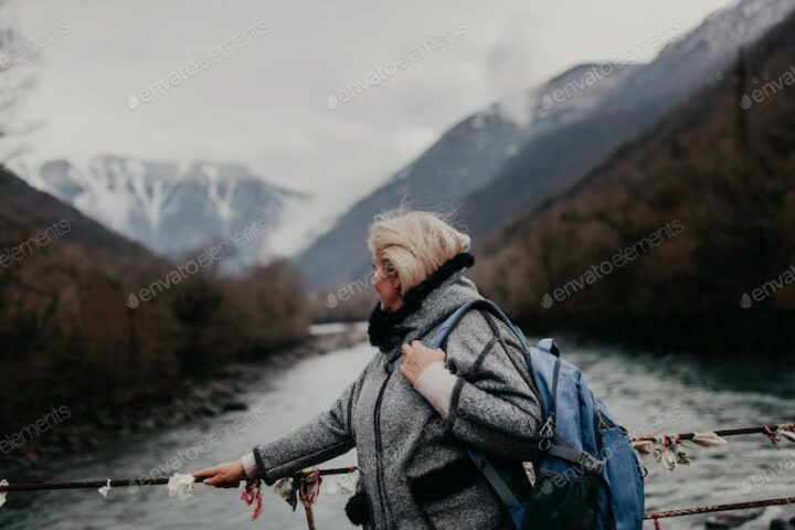 A traveler with a backpack in the mountains A man with a backpack Travel traveler backpack