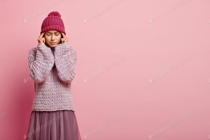 Fashionable teenage model with colored dyed hair doing makeup using mirror brush