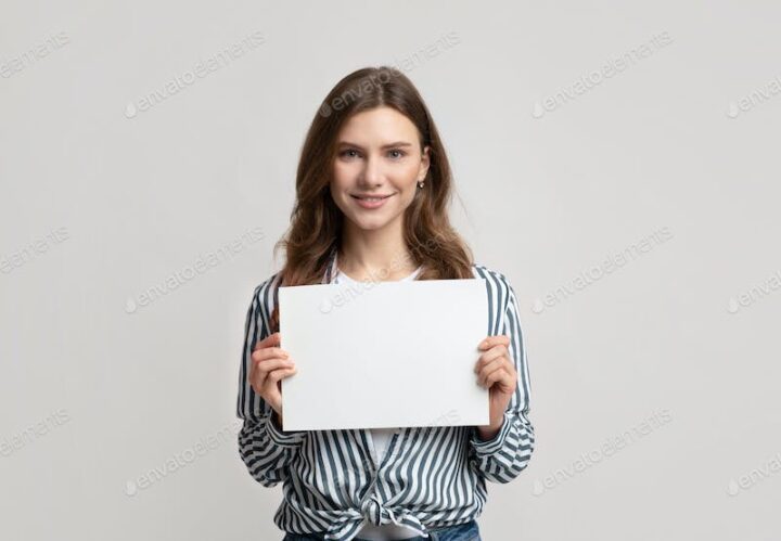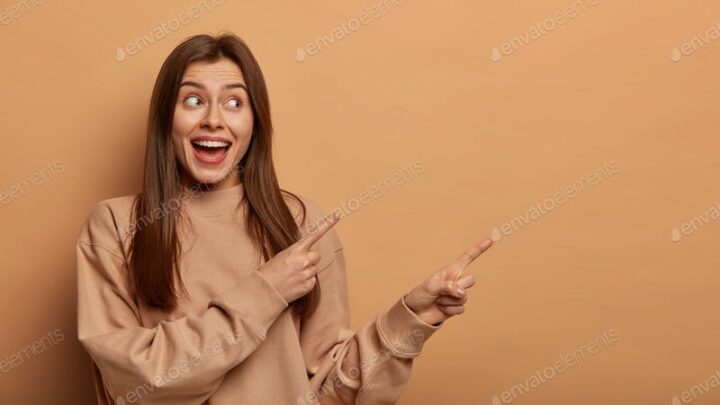 Portrait Of Excited Young Korean Woman Looking At Copy Space With Interest