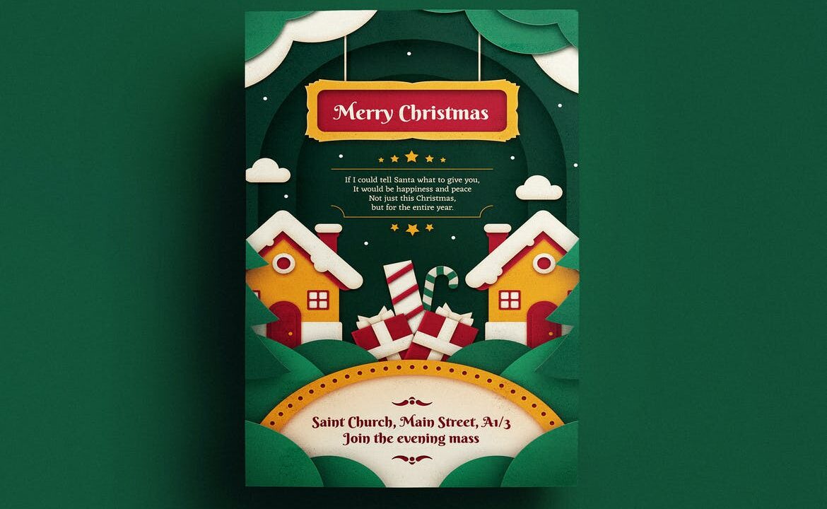 Paper Art Christmas Flyer Template