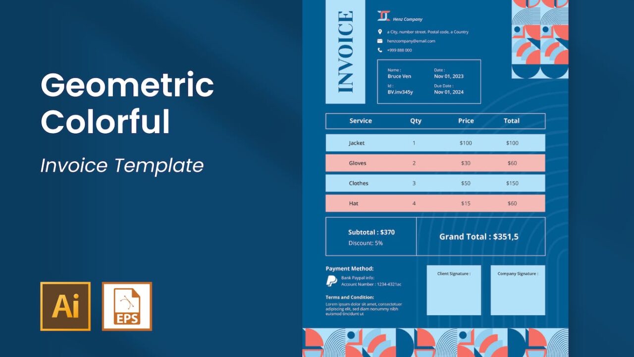 Geometric Colorful Invoice Ai & EPS Template