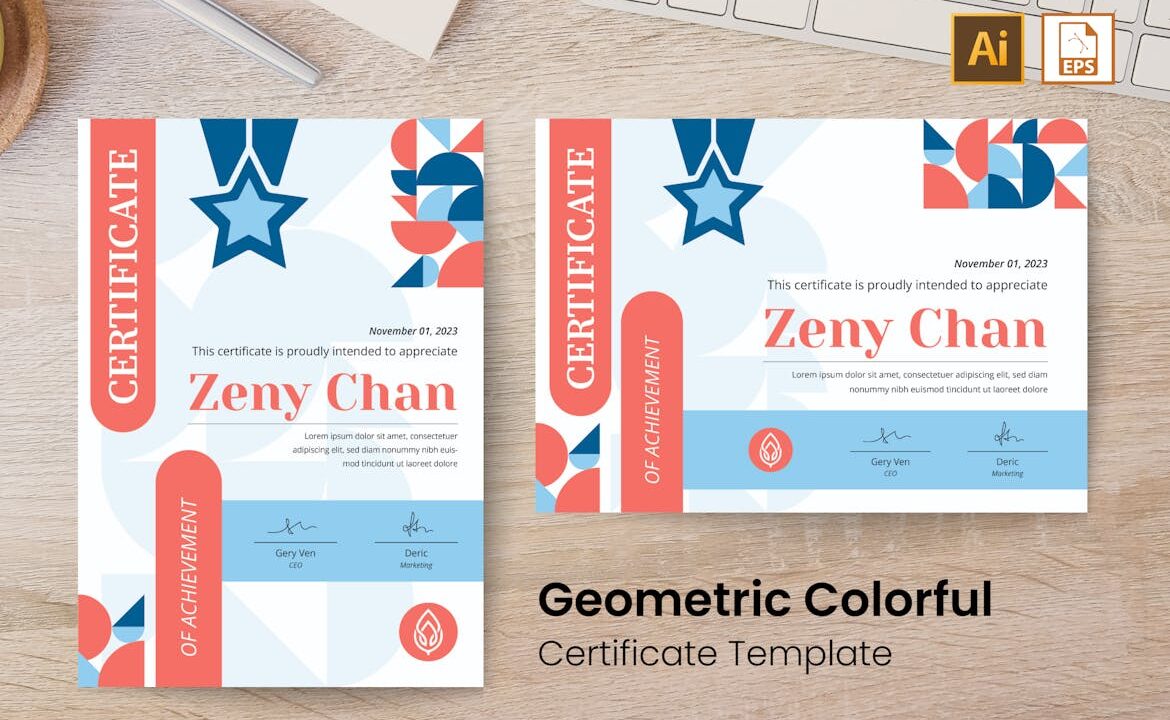 Geometric Colorful Certificate Ai & EPS Template