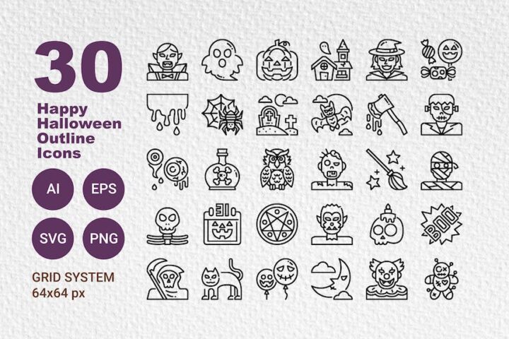 30 Happy Halloween Outline Icons
