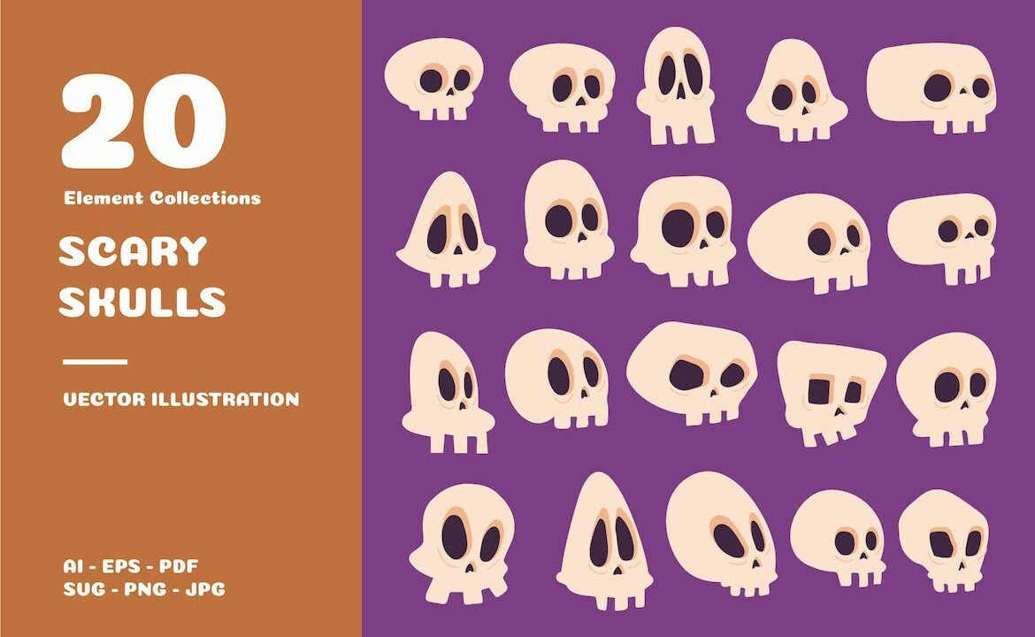 Spooky Scary Face Cute Skull Halloween Element