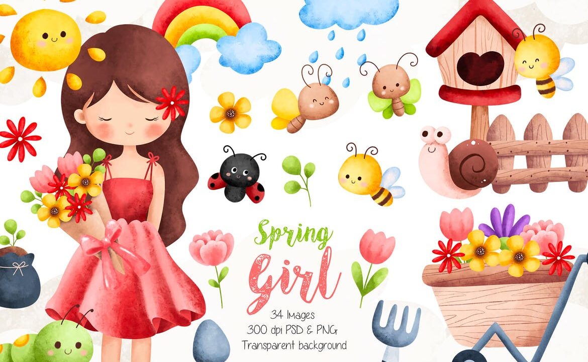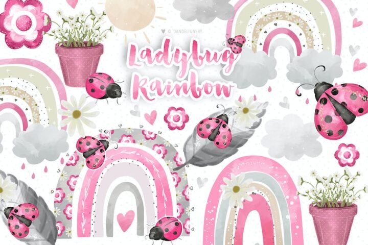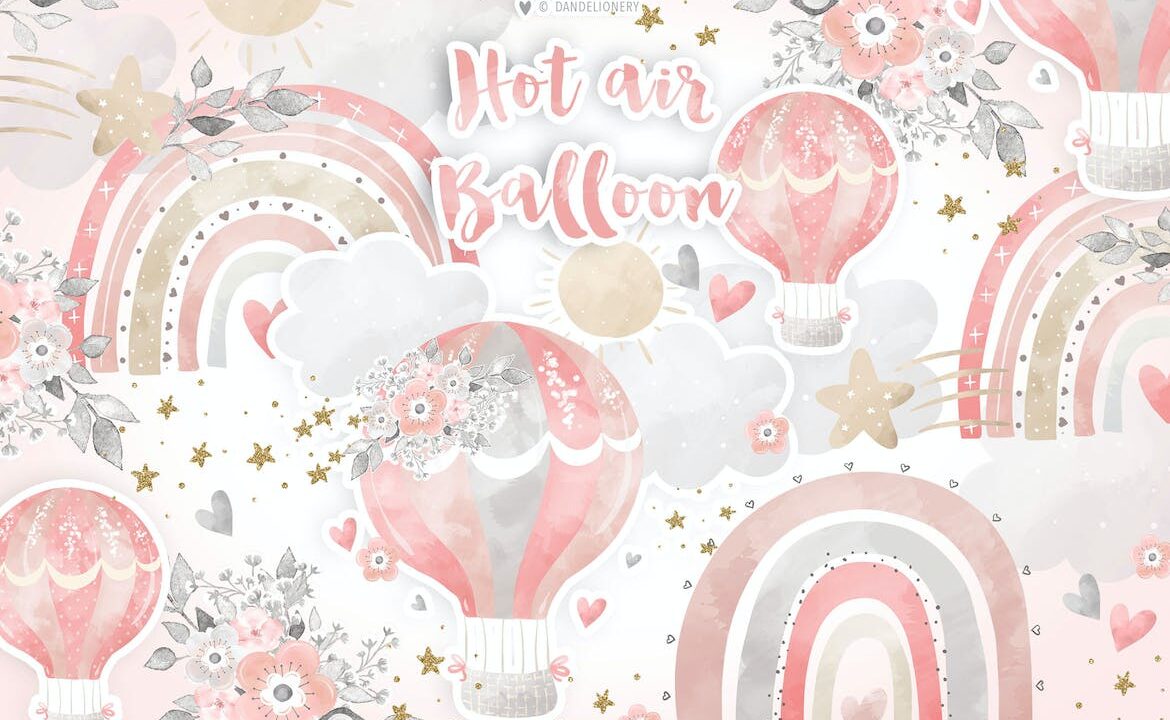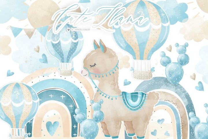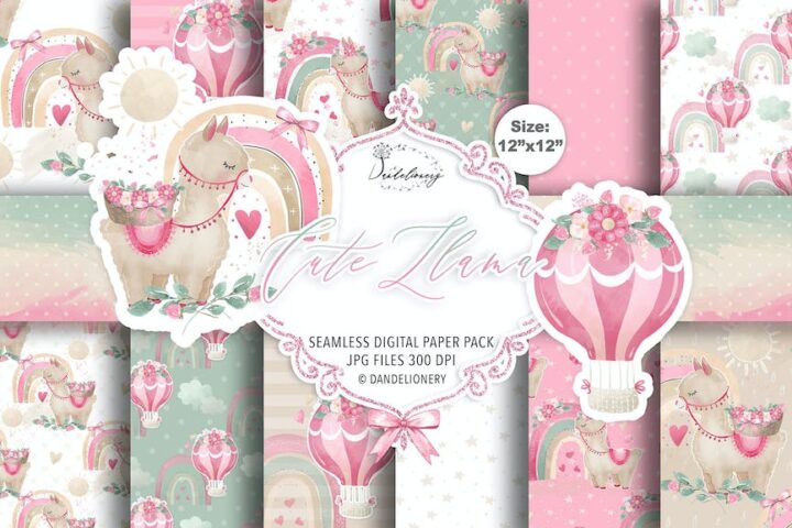 Hot Air Balloon Rainbow Lama Girl digital papers