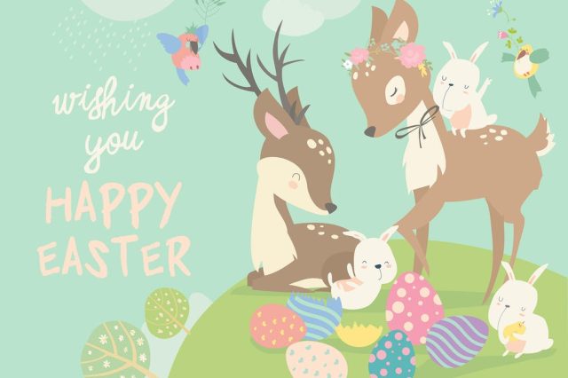Cartoon Deers with cute bunnies Happy animals for
