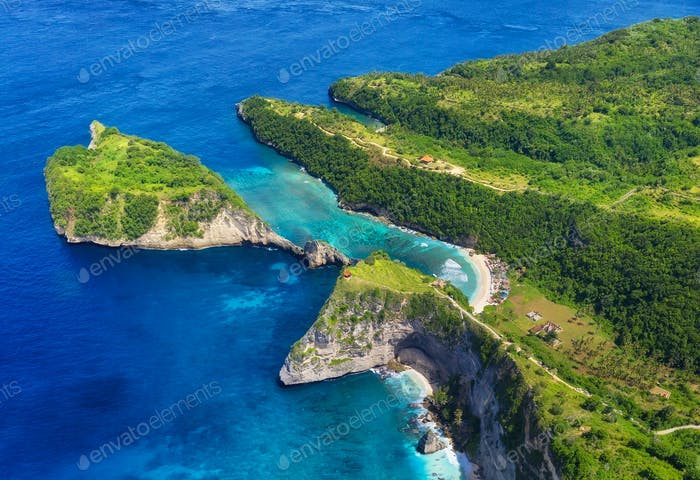 Aerial view at sea and rocks