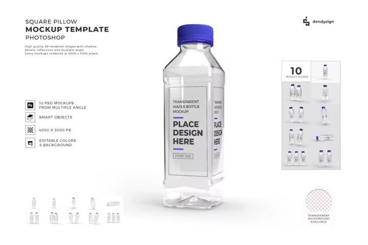 Transparent Plastic Bottle Mockup Template Set