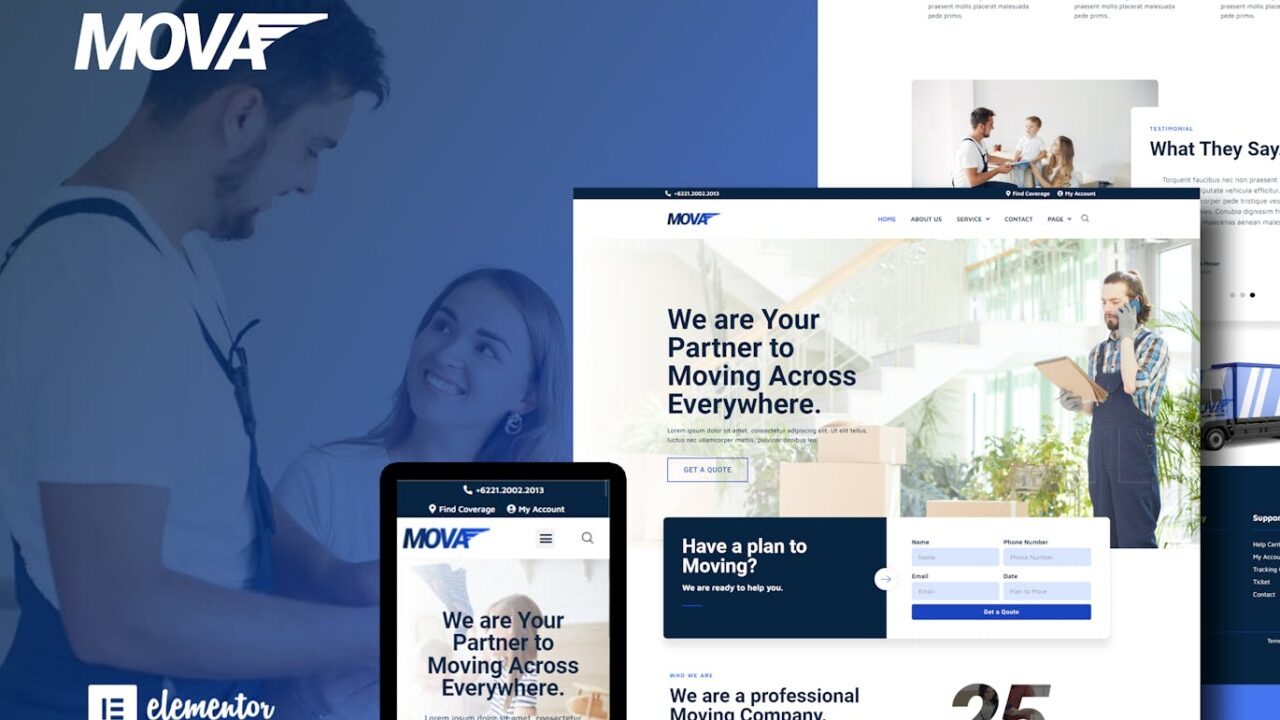 Mova – Moving Company Elementor Template Kit
