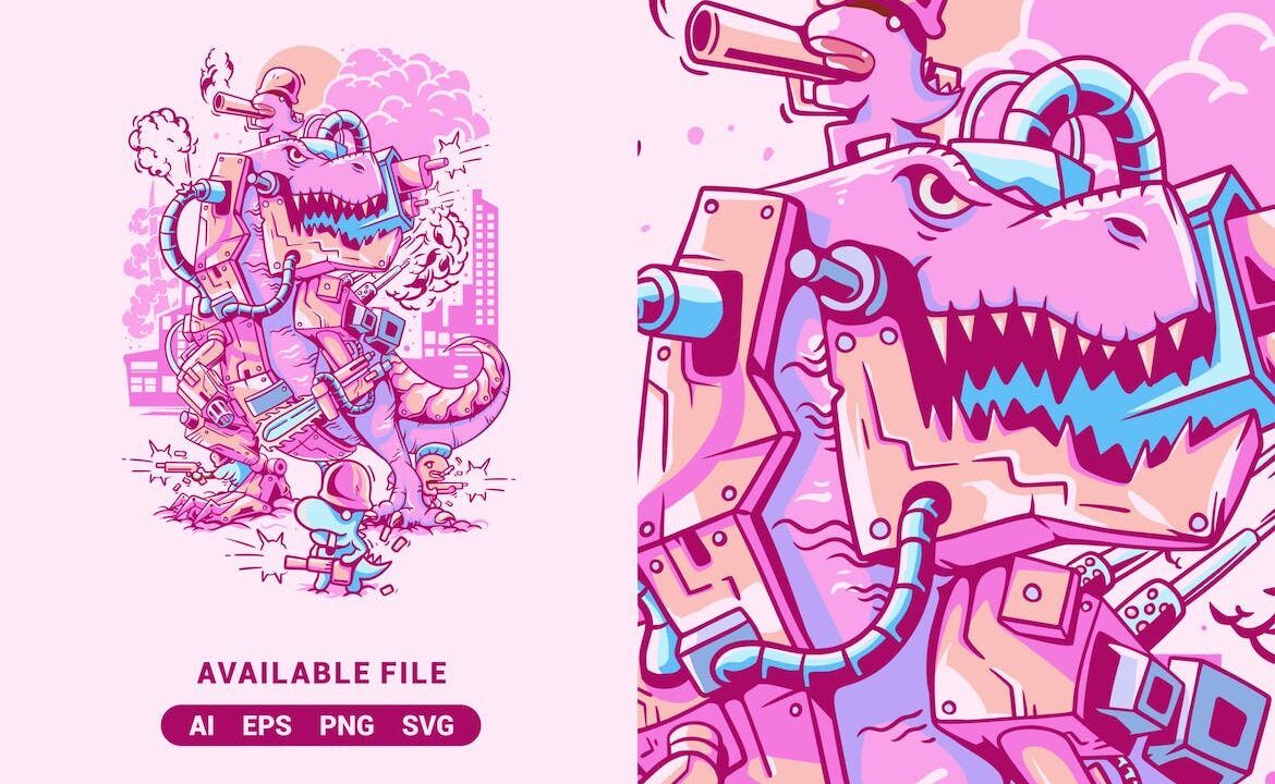 Armored Mecha Tyrannosaurus Vector Illustration