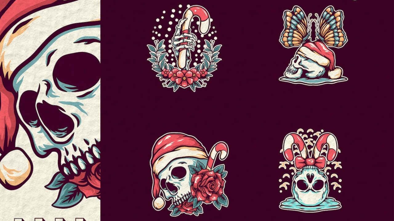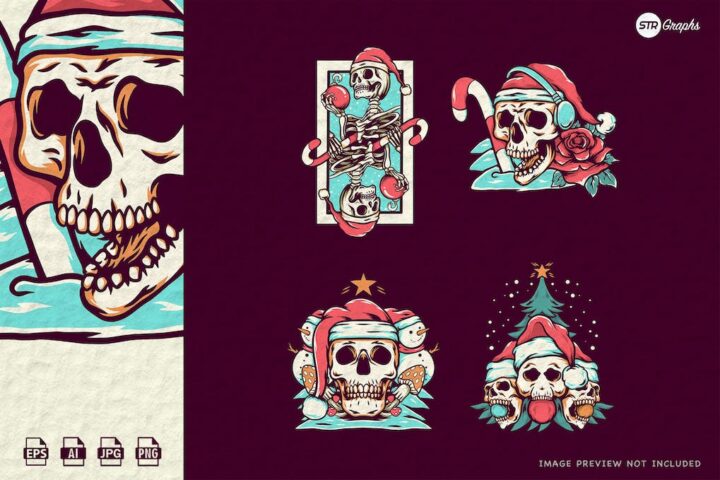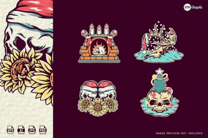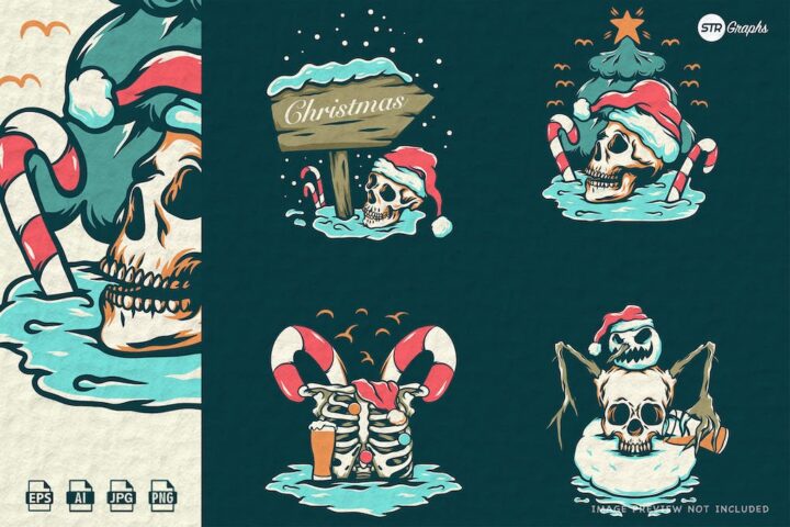 Skull Christmas Illustration Pack