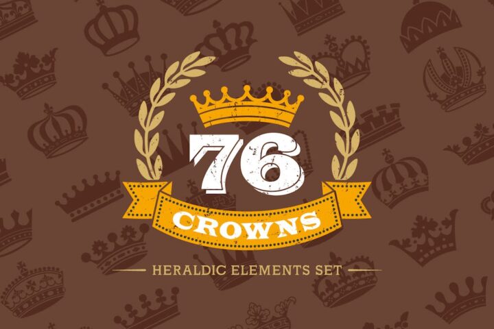 76 Crowns Icons Silhouettes Vector Heraldic Set