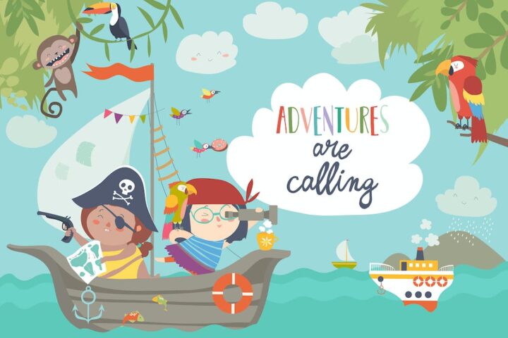 Cute pirates sailing in their ship Vector