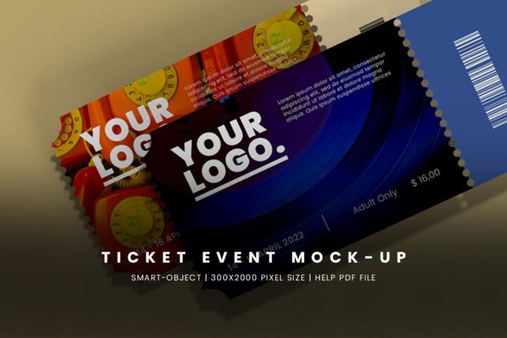 Ticket Event Mockup is suitable to showcase your design with this fresh-looking mockup. It is simple to apply by using smart object feature in Photoshop. So, you can place your design in seconds. the mockup is created with well-structured layers.