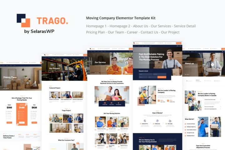 Trago is a modern Elementor Template Kit that perfect to create a WordPress-based website for professional moving and storage services that include relocation services, home packing services, business packing services, and commercial relocation services. This template has a professional design with a 100% responsive layout, is retina-ready, and is very easy to customize because using Elementor so you don’t need a single line of coding!
