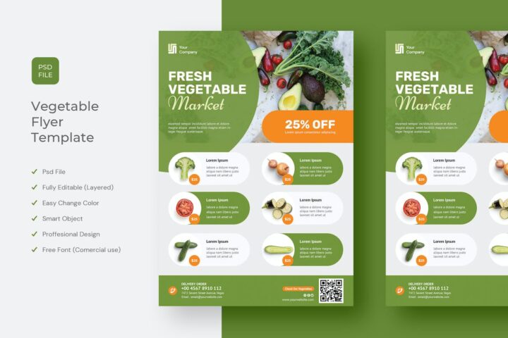 Vegetable Market Flyer Template: Templates that are designed with a minimalist and modern concept can be used for your business promotion. You can do customization easily.