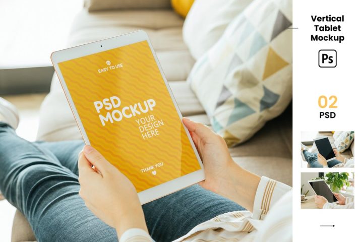 Photo based and easy to use Vertical Tablet Mockup at home.