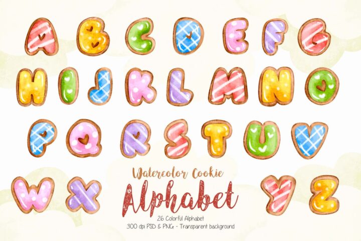Illustration, Cartoon, Cute, Alphabet, Font, Colorful, Watercolor, Cookie,
