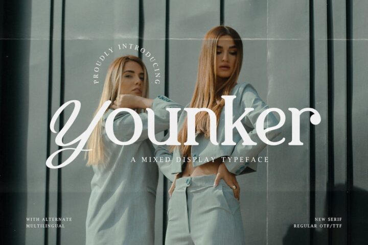 Younker is a mixed serif and script font. No matter the topic, this font will be an incredible asset to your fonts’ library, as it has the potential to elevate any creation.